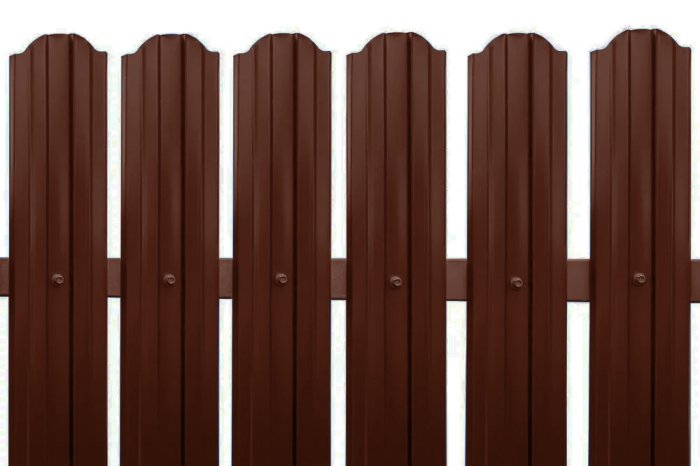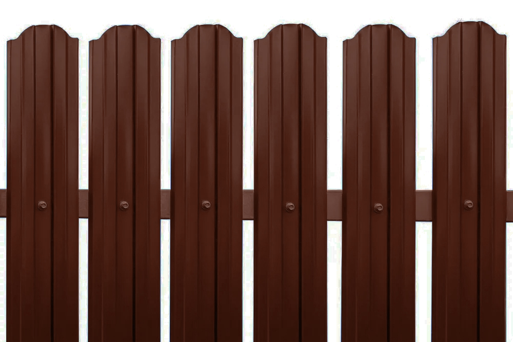 Металлический штакетник с односторонним окрашиванием толщиной 0,45 мм, полукруглый профиль, RAL 8017 «Шоколад».